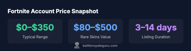 Account prices for Fortnite vary widely and there is no fixed price. In general, an account can range from free for starter progress to several hundred dollars for rare skins or exclusive bundles. Market demand, skin rarity, and account history drive the value, and buyers scrutinize transfer safety. This quick snapshot comes from Battle Royale Guru Analysis, 2026, and is meant to outline typical price bands rather than exact figures.