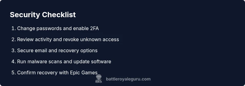Urgent, step-by-step guide to confirm if your Fortnite account is hacked, secure access, reclaim ownership, and prevent future breaches. Battle Royale Guru provides practical, actionable tips for rapid recovery.
