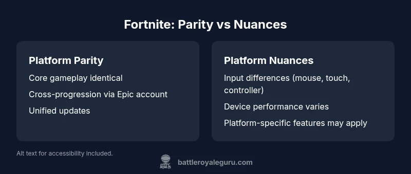 Is Fortnite the same on all platforms? In practice, core gameplay and progression are consistent, and Epic supports cross-platform play and cross-progression. However, the experience can differ due to input methods, performance, and platform-specific features. This quick look sets up the deeper comparison you’ll find below, helping you understand where parity exists and where players may notice differences across devices.