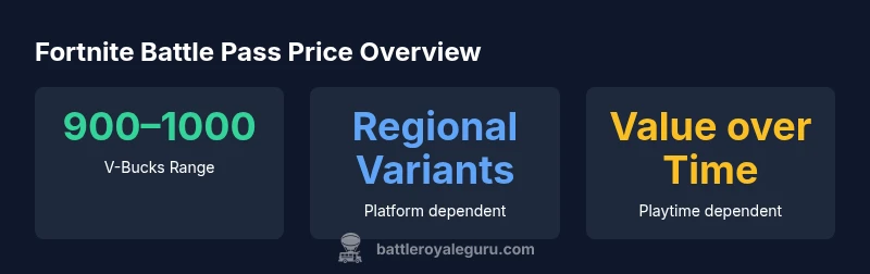 The fortnite battle pass price is more than a price tag; it represents access to a season's progression, cosmetic rewards, challenges, and XP boosts. According to Battle Royale Guru analysis, the pass unlocks tiers that you climb by completing daily and weekly tasks, with additional unlocks each tier. This entry points to the core idea: paying for the pass gives you a guided path through the season's content, plus exclusive items. The cost is quoted in V-Bucks, a virtual currency, and the exact amount you pay can vary by platform, storefront, and regional pricing. In 2026, understanding the price requires comparing the base pass to bundles and promotions, which can trim the overall cost. For players who log significant time each week, the pass often represents a solid value; for casual players, the value depends on engagement and cosmetics you care about. Battle Royale Guru's take: price is a gateway to structure and exclusivity, not just a cosmetic ledger.