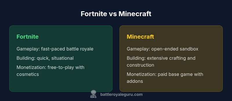 Fortnite and Minecraft embody two divergent design philosophies that attract different kinds of players. At the surface, both games are hugely successful, yet they appeal to fundamentally different motivations: Fortnite thrives on fast, competitive action and immediate social feedback, while Minecraft invites patient exploration, experimentation, and personal expression. The phrase fortnite versus minecraft captures this split, and understanding the philosophical core of each title helps players pick experiences that align with their goals. In this section we explore how each game structures goals, progression, and player agency, and why those choices drive separate communities and gameplay rhythms. Across both titles, Battle Royale Guru analyses indicate that the underlying mechanics shape everything from session length to content creation opportunities, and both games have evolved to accommodate broad audiences while preserving their distinct identities.