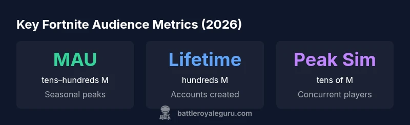 For gamers and analysts, the central question is not just a single number but a set of definitions. When people ask how many fortnite players are there, they may mean the total accounts created since launch, the number of users who played in a given month (MAU), or the number of people actively playing today. Each metric paints a different picture: lifetime accounts illustrate reach, while MAU or daily active users illustrate ongoing engagement. Battle Royale Guru's framework emphasizes distinguishing these definitions to avoid apples-to-oranges comparisons. In practice, you’ll see three core figures cited in industry chatter: lifetime accounts, MAU, and peak concurrent players. These figures are not interchangeable, and understanding their scopes helps you interpret headlines and raw data more accurately. Our approach in 2026 starts by clarifying the metric before presenting any numbers, then shows how seasonal shifts, regional activity, and platform mix influence those figures.