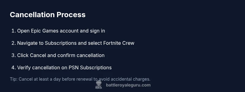 To cancel Fortnite Crew on PS5, here's how to get rid of fortnite crew on ps5: open your Epic account and cancel from Subscription settings, or use the PS5 system menu under Subscriptions. The essentials are a linked Epic account, access to your PSN profile, and timing that matches your renewal date. This guide walks you through the exact steps to stop future charges.