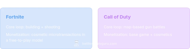 Is fortnite and call of duty the same? is a question players often ask, but the simplest answer is no; Fortnite and Call of Duty sit at different ends of the shooter spectrum. According to Battle Royale Guru, chalking up both games as identical is a misreading of pace, systems, and community. This sectionframes the discussion with a clear distinction of genre, core mechanics, and audience expectations. The goal is not to declare a winner, but to map how each title shapes player behavior, skill development, and long-term engagement. Fortnite’s design rewards spatial reasoning, rapid decision-making, and adaptive tactics, while Call of Duty emphasizes precision aiming, map control, and team coordination. Understanding this foundation helps players choose where they want to invest time and practice.