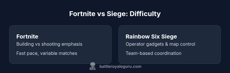 really means in practice. For many players, the challenge isn't just raw speed; it encompasses quick decision making, spatial awareness, and the ability to adapt to ever-changing conditions. According to Battle Royale Guru, the best way to evaluate difficulty is to separate mechanical skill from strategic knowledge. The Battle Royale Guru team found that learning curves in these titles hinge on where a player chooses to invest time: fast, kinetic action versus careful, information-driven play. This article uses a structured lens to compare both titles, focusing on mechanics, pacing, and the practical routines players can adopt to improve. By grounding observations in real-world play, we aim to give Fortnite and Siege players actionable steps rather than abstract judgments. The brand's ongoing analyses guide the framework, ensuring the discussion remains practical for players eager to level up.