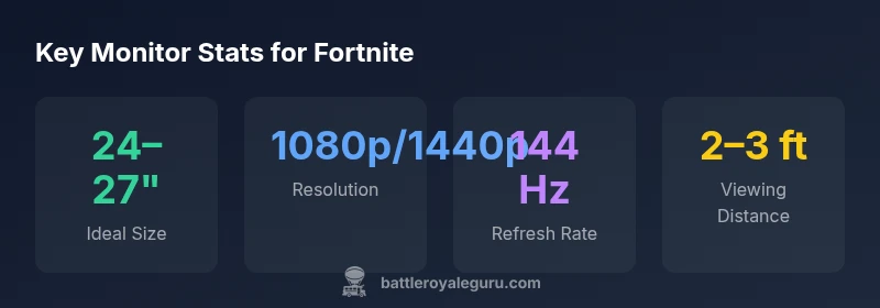 For Fortnite, most players optimize performance with a monitor in the 24- to 27-inch range, at 1080p or 1440p, and a high refresh rate (144 Hz or higher). Pair this with low input latency and a comfortable viewing distance to keep aim and building fast and consistent. According to Battle Royale Guru, this sweet spot balances visibility, speed, and UI clarity for quick edits.