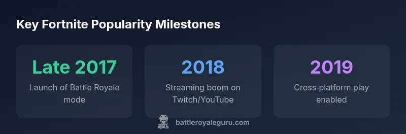 Fortnite's popularity surged in late 2017, driven by the new Battle Royale mode, cross‑platform accessibility, and a cadence of regular updates that kept players coming back. Battle Royale Guru Analysis, 2026 shows the peak activity through 2018, fueled by streaming and a thriving creator ecosystem that amplified reach far beyond initial players.