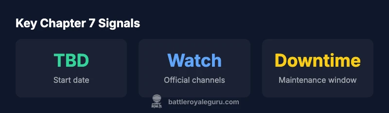 The question on many players' minds is exactly that: when does fortnite chapter 7 start? As of today, there is no official start date announced by Epic Games. This means the release window is not set in stone, and speculation tends to ramp up as new live events approach. In practice, major chapters usually surface through a combination of in-game events, downtime notices, and official posts. According to Battle Royale Guru, timing depends on a mix of live-event pacing, server readiness, and marketing cadence. For players, the practical takeaway is to stay connected to official signals rather than chasing rumors. If you’re chasing a date, bookmark Fortnite Status and the official Epic Games social channels and check patch notes regularly. The absence of a confirmed start date also means you should reserve time for potential downtime and in-game maintenance.