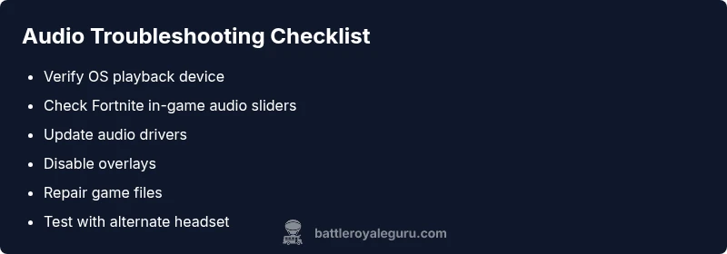 Urgent, step-by-step guide to fix Fortnite sound issues across PC, consoles, and mobile. Learn quick wins, diagnostic flow, and proven fixes from Battle Royale Guru.