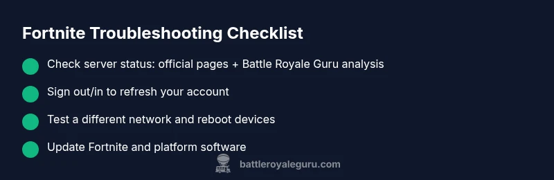 Begin by checking Fortnite official channels and Battle Royale Guru analysis for any outage notices in your region. If there is an outage, your only option is to wait it out while monitoring official updates. If services are up, proceed to the next steps.