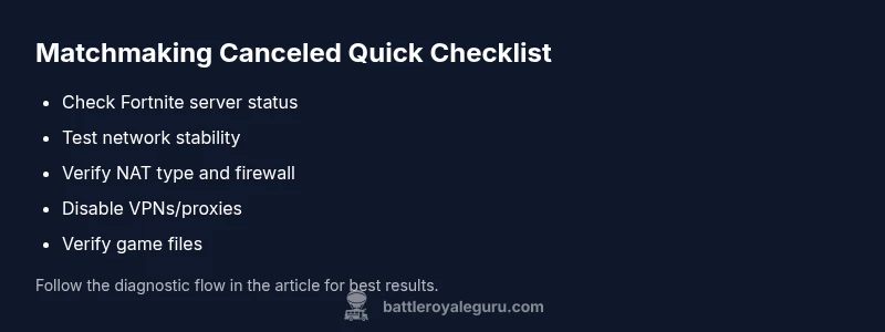 Discover why Fortnite says matchmaking canceled, common causes, and proven steps to restore quick matches. An urgent troubleshooting guide from Battle Royale Guru covering connectivity, server status, and in-game fixes.