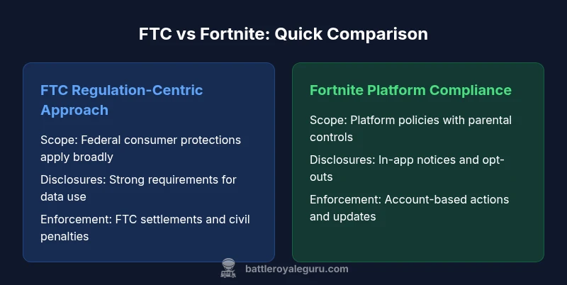 FTC v Fortnite examines how federal consumer protection rules intersect with multiplayer gaming, loot mechanics, and data privacy. The FTC seeks transparent disclosures, strong safety controls, and safer data handling, while Fortnite emphasizes platform policies and parental controls. This article provides a side-by-side comparison of an FTC-centric regulatory outlook and Fortnite's platform compliance, helping players anticipate changes to purchases, account privacy, and content safety.