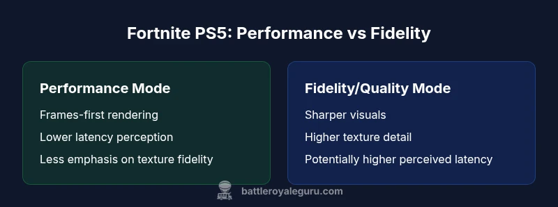Fortnite on PS5 leverages the system's hardware optimizations, but there is no dedicated Fortnite PS5 edition. The game client is shared with other platforms, and all players access the same Epic Games account features, cosmetics, and saves. In practice, the variation you notice comes from how the PS5 harnesses the game through different performance modes, display options, and the speed of loading into matches. According to Battle Royale Guru, the PS5's architecture provides headroom for improvements in loading times and input responsiveness, even when running the same Fortnite build as on other platforms. The core Fortnite experience remains consistent, but the way the console renders frames and textures can shift your perceived experience. This guide breaks down the major areas where those differences show up: performance modes, resolution, loading, and cross platform features.