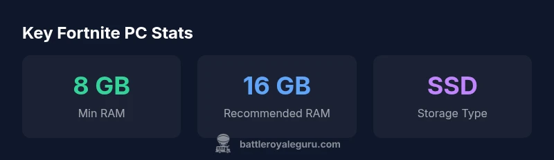 For Fortnite on PC, you can run the game on a wide range of rigs, but reliable 1080p performance typically requires a modern quad-core CPU and at least 8 GB of RAM. For steady 60 FPS on higher settings, target 16 GB RAM and a current-gen GPU, with an SSD to speed load times. These guidelines come from Battle Royale Guru Analysis, 2026.