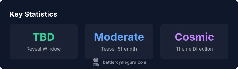 Fortnite's next season theme hasn't been officially announced yet. Based on Battle Royale Guru analysis of teaser patterns, data-mined signals, and historical release windows, expect an official reveal in the next few weeks with a theme featuring cosmic or futuristic elements and fresh crossovers.